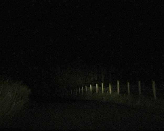 Shot on video driving on a remote unlit country road at night. The car's headlights are turned off at dangerous intervals.